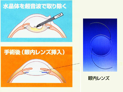 水晶体の濁りを取り除き、人工の水晶体(眼内レンズ)を移植する手術を行います。したがって、網膜や視神経、角膜などの他の部分に問題がなければ、視力低下の回復が期待できます。
